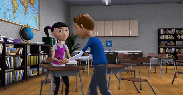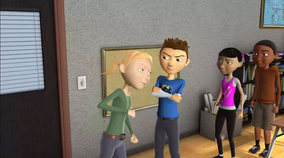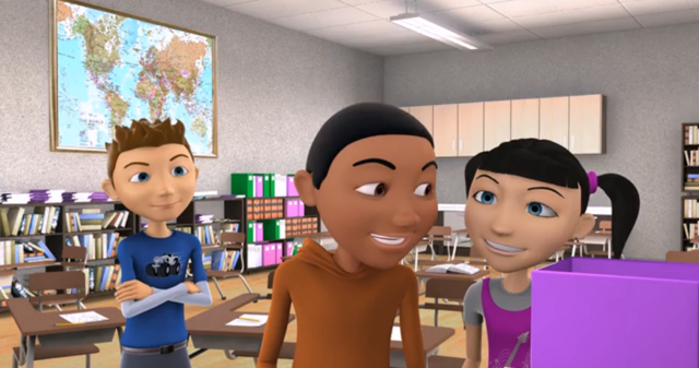 Webisode Summary: The first scenario shows how to offer help to a friend when they’re having a hard time with an assignment. The user must choose how to offer help and are taught the difference between helping someone and taking over. The second scenario shows how to offer help to a friend that is being left out or teased and explains why it is important to accept help that has been offered.