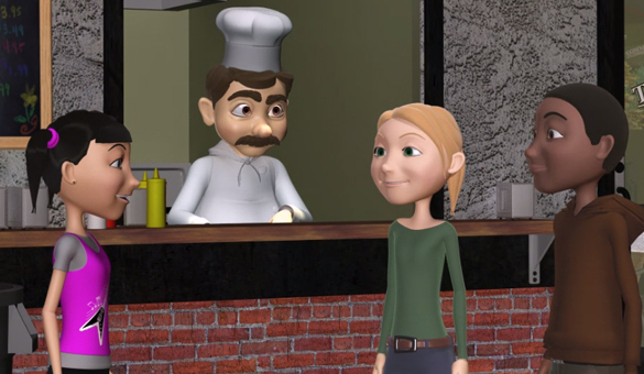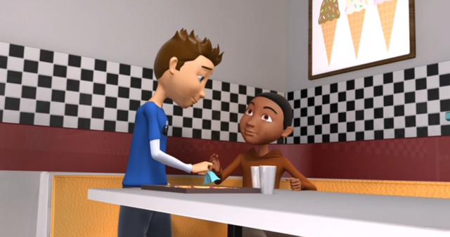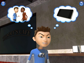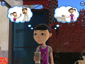 Webisode Summary: In the first scene, Emma notices that it’s the end of the school day and the class hasn’t yet been dismissed. The user helps Emma to successfully notice clues in her environment to tell her what she should be doing. In the second scene, Zack, Emma, Katie and Sam order food at Tommy’s restaurant. Everyone’s food arrives, except for Sam’s. The user helps Zack to pay attention to non-verbal clues in his environment to make a good choice about what he should be doing.