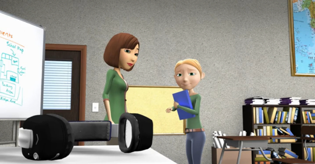 Webisode Summary: In this lesson, the user helps Emma decide what her volume of voice should be in each school setting: classroom, library and playground. A Voice-O-Meter is shown and the user can adjust the volume of Emma’s voice to quiet, medium, or loud. The user is taught to match her voice volume level to the voice volume that others are using in that setting.