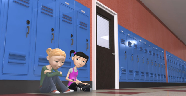 Webisode Summary: Katie just ran out of the music classroom and she is very upset because her drum solo did not go as planned. Emma comes outside of class and approaches Katie. The user will help Emma decide what to say to Katie to make her feel better about the situation.