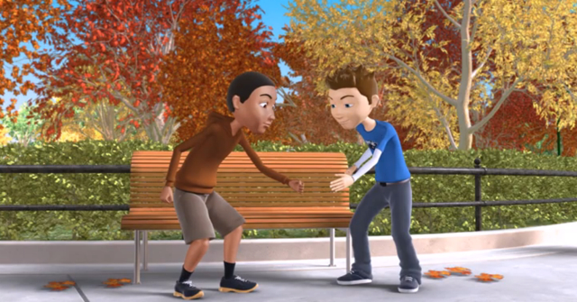 Webisode Summary: In this lesson, the user learns the importance of having an arm’s length distance between them and the person they’re talking to so both people feel comfortable. In the first scene, the user will help Sam decide the appropriate amount of space between Zack and himself in a conversation. In the second scene, the user will decide the appropriate distance that Katie should have from Emma while she’s on the swing.