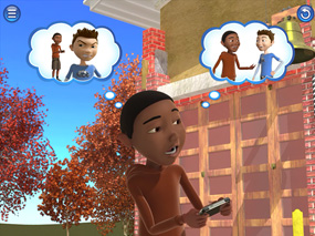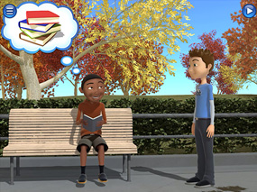Webisode Summary: The lesson presents a situation where a character is attempting to have a two-way conversation. However, one the characters is not making eye contact or paying attention, which upsets the character talking. The user is presented with two choices of how to cope with the situation. One solution shows a negative result while the other solution shows a positive result. After the character’s feeling is identified, the user is able to select a coping strategy for the character to act out.