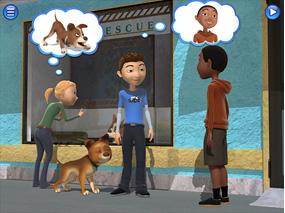Webisode Summary: This webisode shows two of the characters looking at the animal rescue and a third character joins them. The user is able to select and watch two scenarios, one which results in everyone having a good time, and one in which some of the characters are upset.