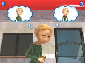 Webisode Summary: The lesson presents a situation where a character is attempting to order a meal at Tommy’s Cafe. However, there is a mistake made and the order is incorrect. The user is presented with three choices of how to cope with the situation. Two solutions show a negative result while the other solution shows a positive result. The user is able to select a coping strategy for the character to act out.