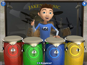 Webisode Summary: As Zack plays his drums, the user will need to copy the rhythmic patterns that Zack plays. The user will need to watch where Zack looks in order to help him or her remember each pattern. The user will need to correctly complete five rhythms in order to complete the lesson.